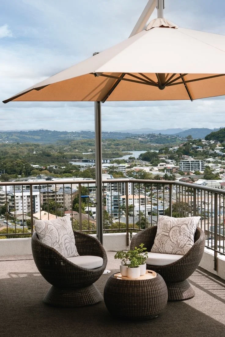 You might be tempted to think you cannot do much with a small space? But the truth is with a little creativity and some considerate planning, you can create the setting best suited for multiple occasions. In this example, our customer can easily shift from a tranquil novel lounge to a rustic dinner party set in a matter of minutes! The centre piece for both of these is our rectangular Deluxe single tilt sunshade umbrella